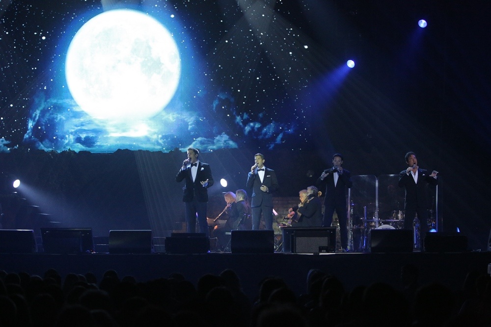 На концерте в Ледовом прозвучали самые раскрученные хиты из бродвейских мюзиклов, но в новой романтической интерпретации. Многим меломанам такие «перепевки» не по душе, и они предпочитают оригинальное исполнение. А вот публике, которая собралась в этот вечер в зале, красивые мужчины с красивыми голосами, яркое шоу и любимые мелодии, наоборот, пролили бальзам на истерзанные санкциями души.