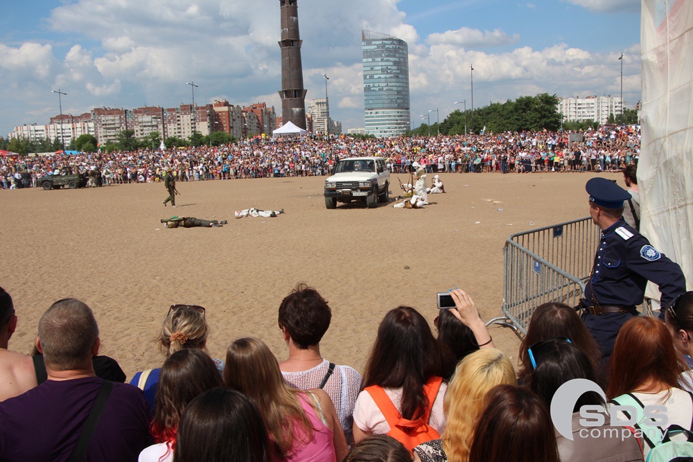 Погода была самая, что ни на есть, питерско-июньская, но программа Праздника помогла гостям не обращать внимание на мелкий дождь и ветер. Военно-исторические реконструкции, выставка исторического и современного оружия, показательные выступления бойцов спецподразделений,- вот сколько интересного можно было увидеть! И не только увидеть, но и самим принять участие — на пляже работали интерактивные площадки, названия которых говорят сами за себя — «База спецназа», «Школа рукопашного боя», «Страйк-бол тир» и другие.