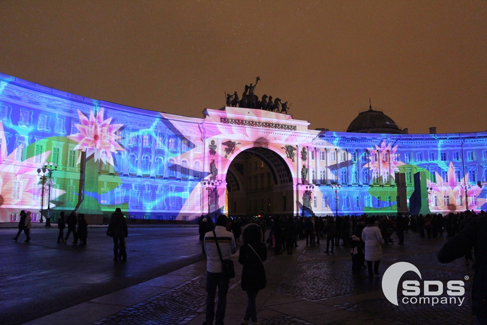 И, тем не менее – здание Генерального штаба, длиной 580 и высотой 36 метров, на целых десять дней стало гигантским экраном для мультимедийного представления, демонстрирующего традиции встречи Нового года в разных странах мира, от Индии и Китая, до Кубы и Армении. Каждый вечер, с 18.00 до 23.00 Дворцовая площадь собирала тысячи зрителей на свое 50-ти минутное красочное световое шоу.