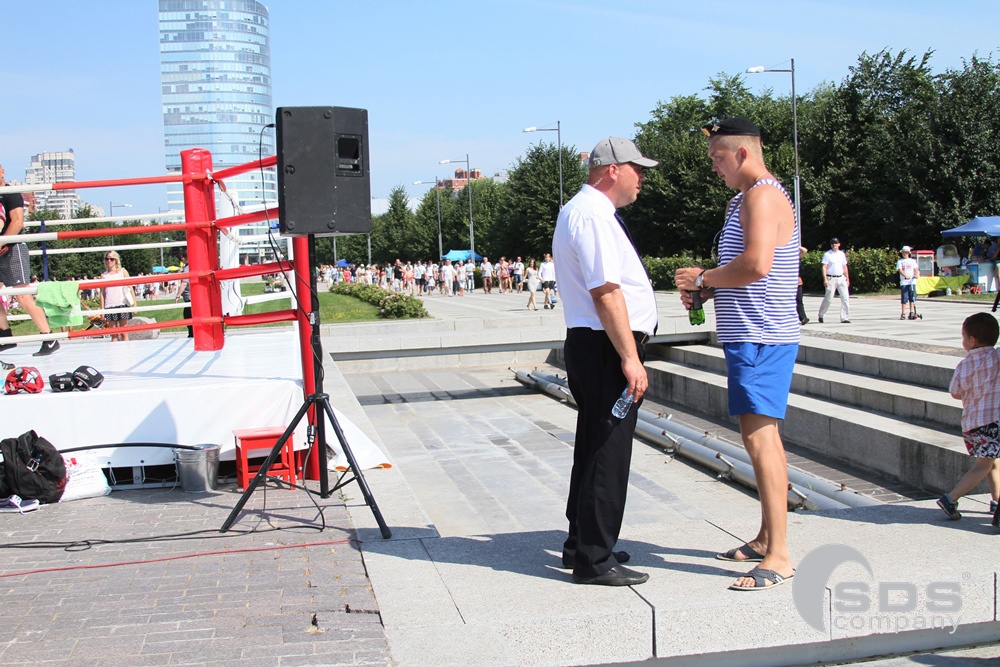 В Парке 300-летия, где сотрудники Компании SDS обеспечивали мирное сосуществование празднующих и отдыхающих, ко всему прочему прибавилась ЖАРА. Плавился песок на пляже, на асфальтовой дорожке можно было оставить след, публика под палящим солнцем дурела от градусов внутри и снаружи… В общем, нам было, чем заняться!