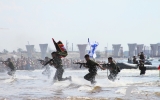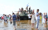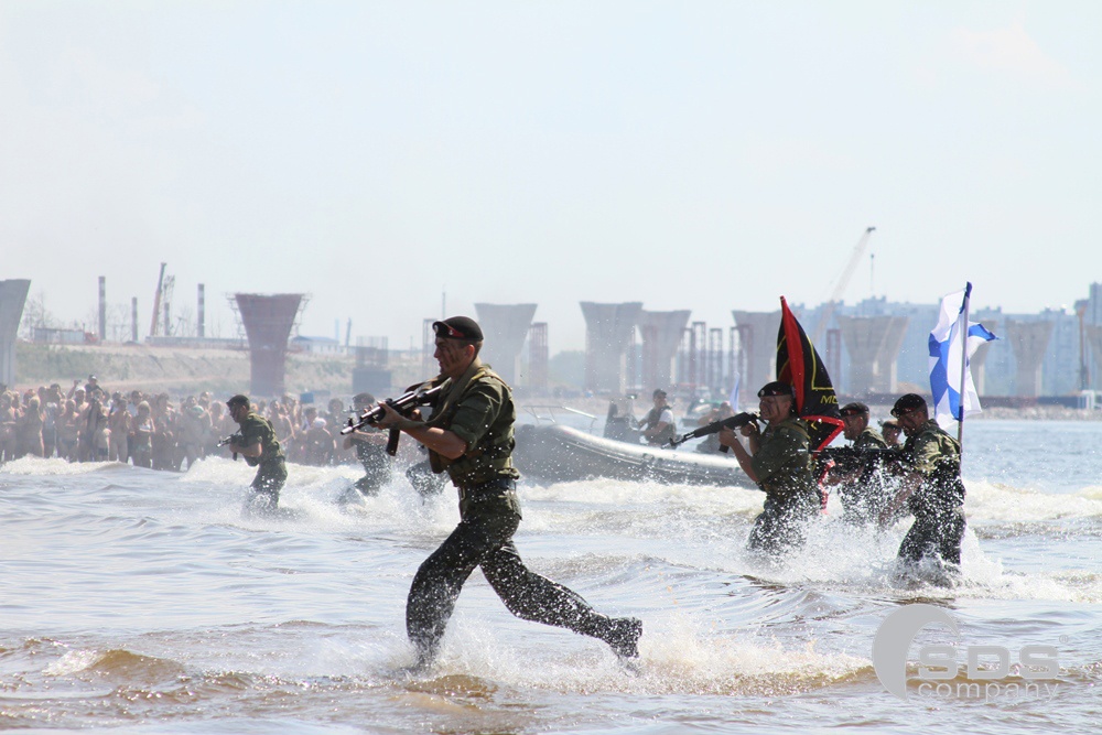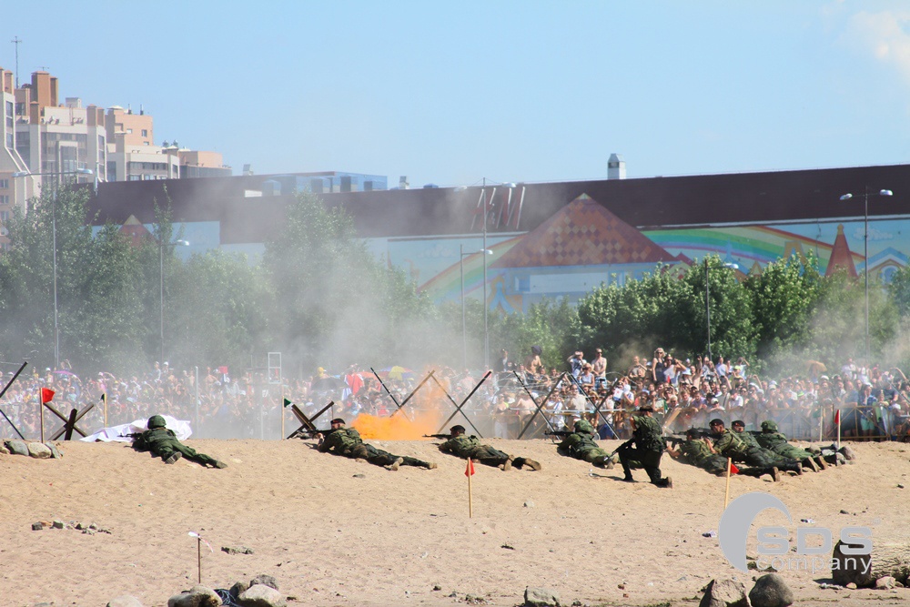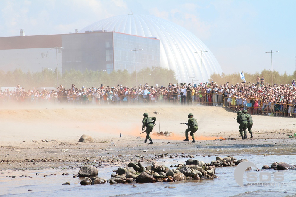 А в это время на берегу залива разворачивалась военно-морская операция с применением десантных кораблей и боевой техники «Невский десант». Реконструкция с высадкой на берег взвода морской пехоты и элементами современного боя никого не оставила равнодушными.