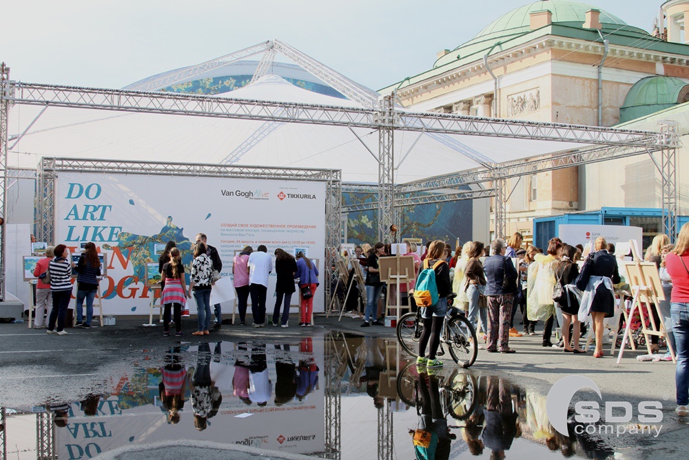 100 мольбертов и 340 литров краски было приготовлено для того, чтобы каждый желающий смог попробовать себя в роли художника и написать свою собственную картину по мотивам творчества гениального Ван Гога.